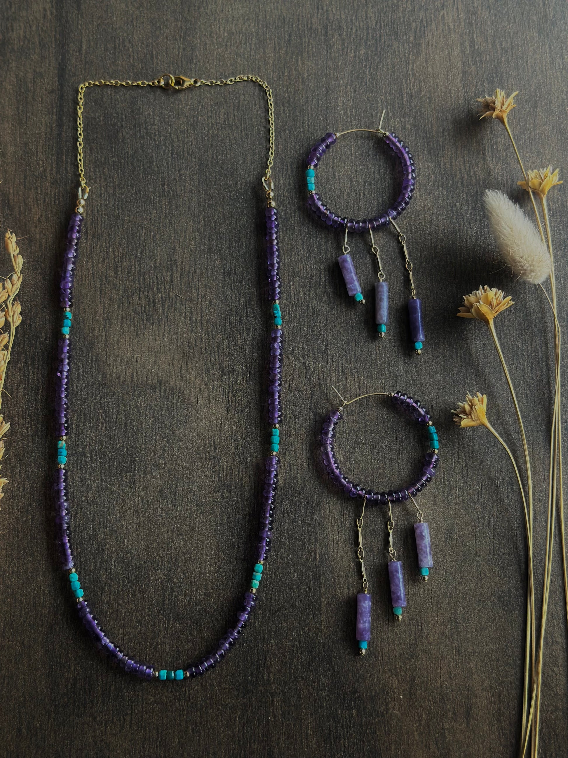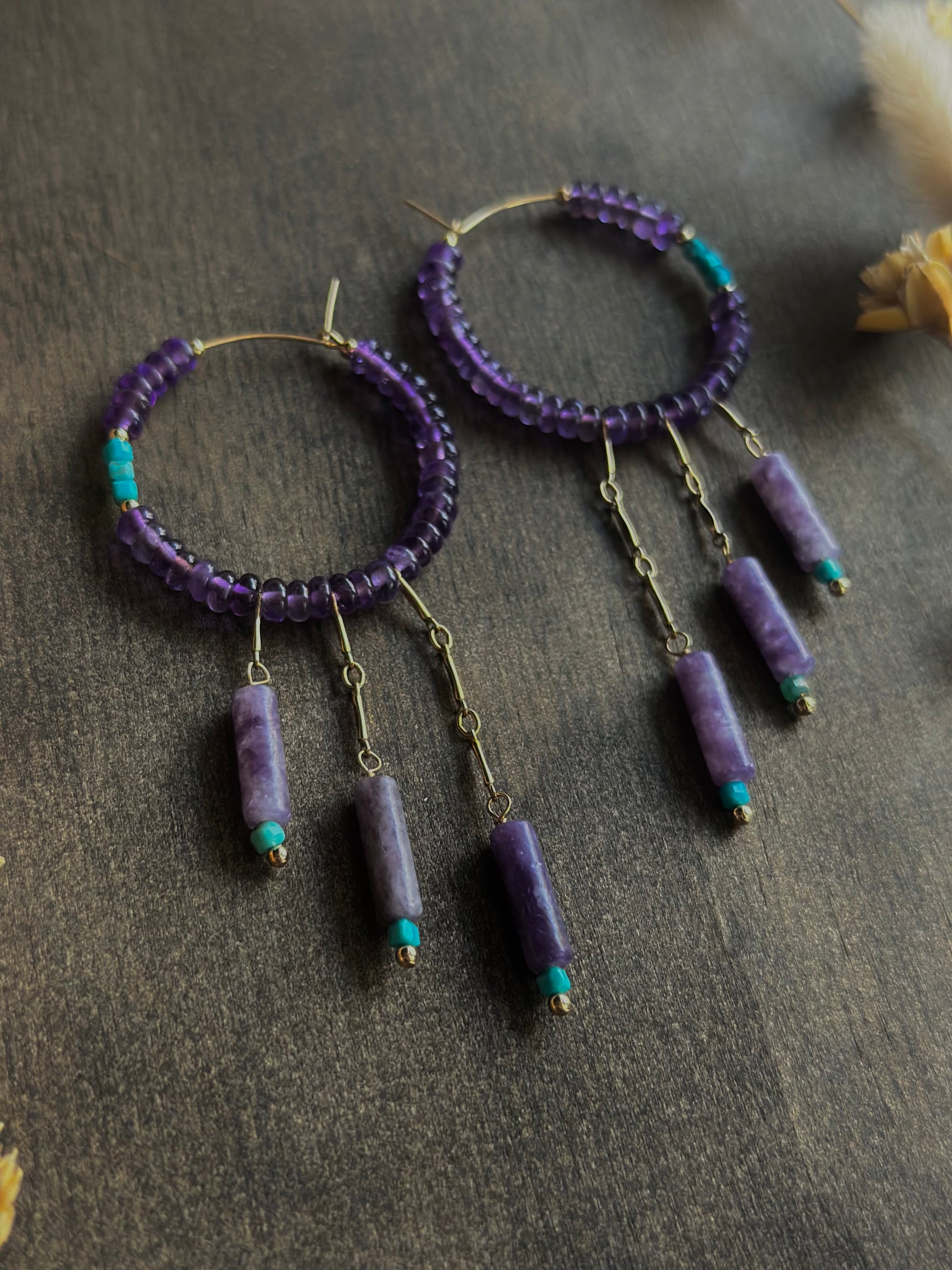 Amethyst & Turquoise Fringe Hoops