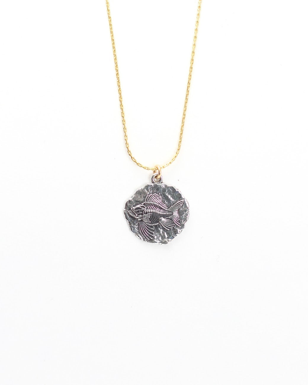 14K Yellow Gold Filled Chain and Sterling Silver Angler Fish Fossil Necklace