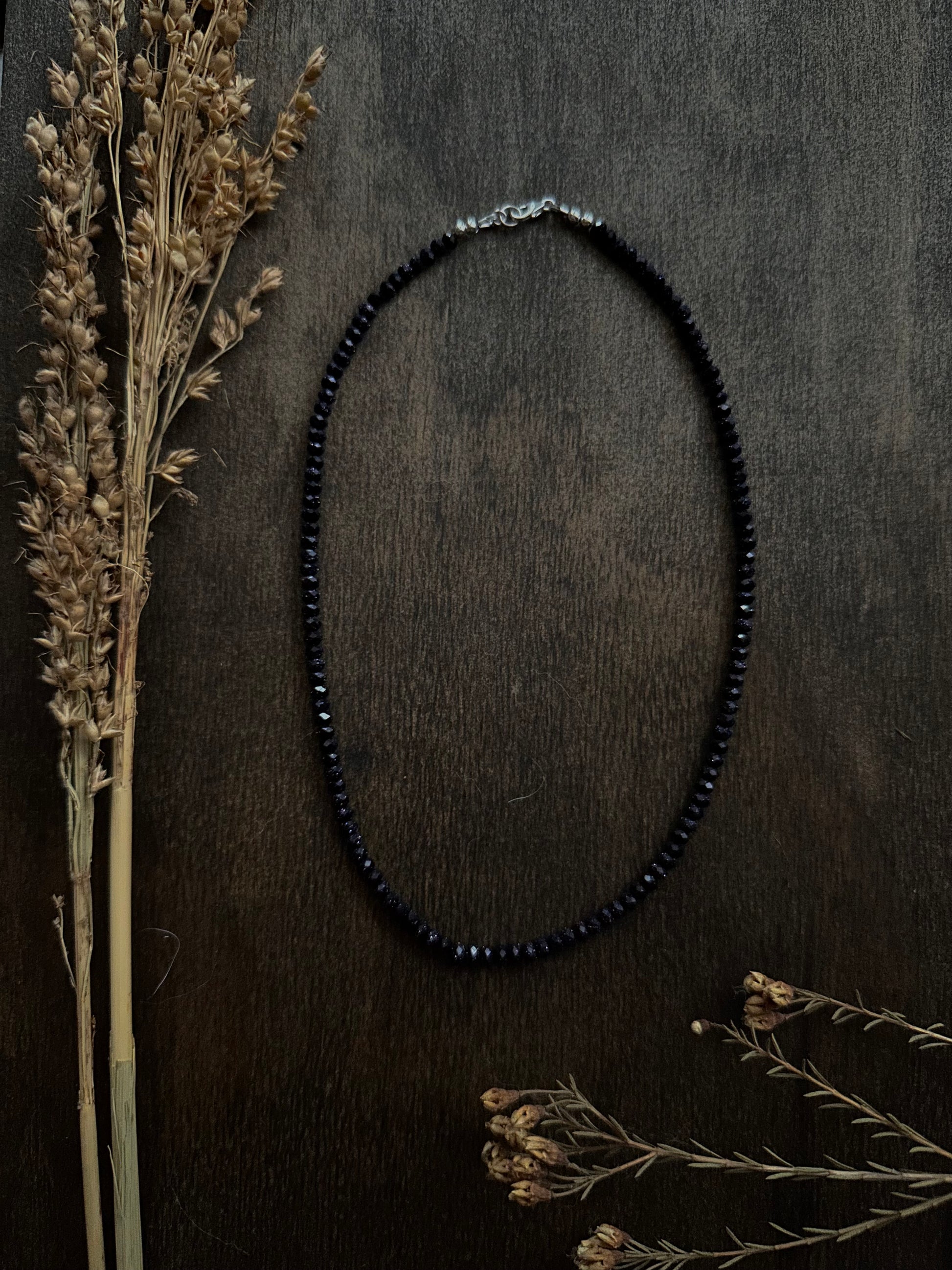 Sterling Silver Hand Strung Blue Goldstone Necklace
